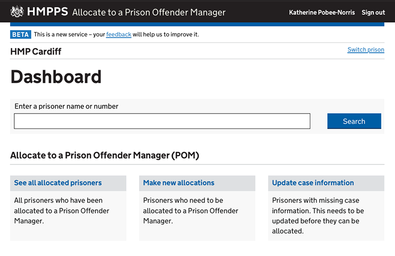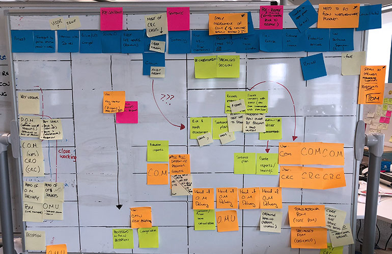This meant spending a great deal of time working with those based in prisons and community based probation offices to validate our thinking. These research sessions were not limited to just prototype testing (on paper, PDF and HTML prototypes) but also to other forms of user validation, such as workshops, focus groups and card sorting.