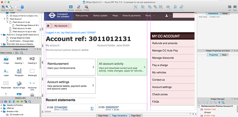 As there was many features that needed to be implemented in order to successfully replace the legacy system, it was necessary to divide the work amongst several design and research teams. In order to aid consistency amongst these teams, we created a shared Axure prototype that allowed us to share our design patterns and styles.