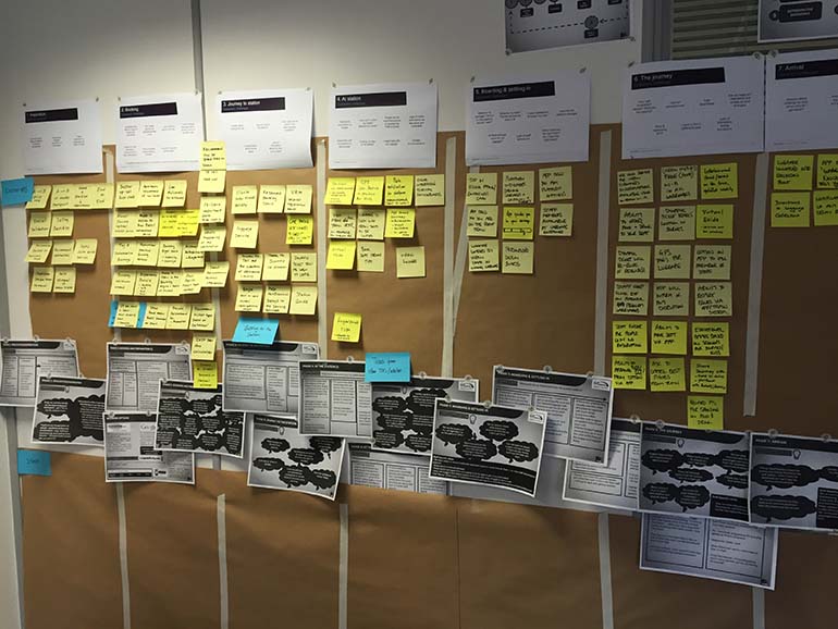 In order to have a better understanding of the industry, we embedded ourselves within all aspects of the service. This included working alongside staff at the rail stations, conducting research onboard trains speaking to both travellers and onboard crews, setting up base within their head office so we could work closely with senior level staff to get to their perspective and spending time within the call centres to understand common support questions.