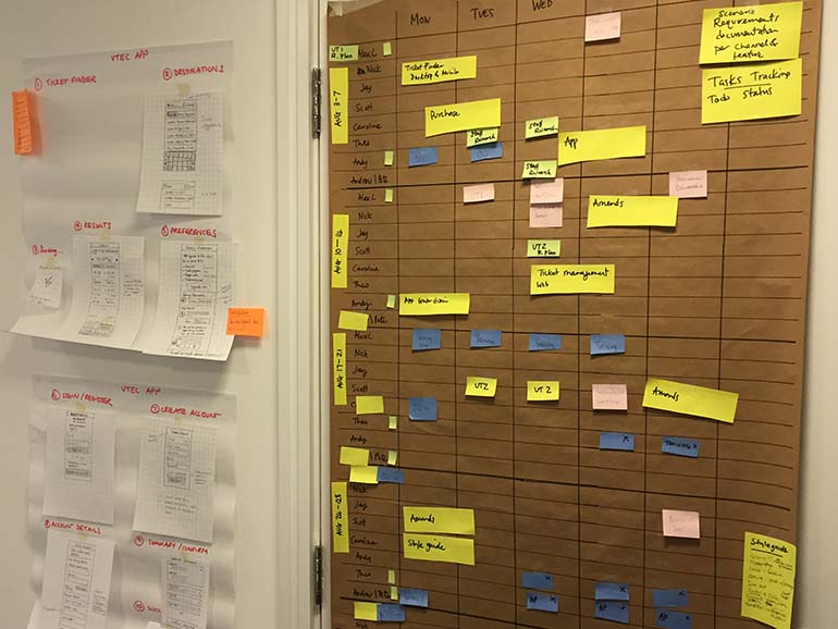 The project had an ambitious timeline due to contractual agreements with the government, because of this we adopted a ‘test early, test often’ approach. By testing frequently, it allowed us to quickly test our concepts and iterate on these as we validated our learnings. As testing and design cycles were shortened, it also reduced the risk of the team becoming too attached to any one design solution. Because there were a total of 11 designers on the project, I often had to design and facilitate research sessions that were conducted in multiple research labs and conducted in and around train stations so that we could observe participants within their context use.
